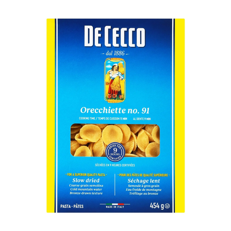 Las orecchiette (orejas pequeñas), también conocidas como “strascicati”. Se cocinan en agua hirviendo con brócoli o papas y se sirven con salsa de tomate y queso de oveja, o con ajo y aceite. También se sirve con ragú de verduras o cordero y ricotta.